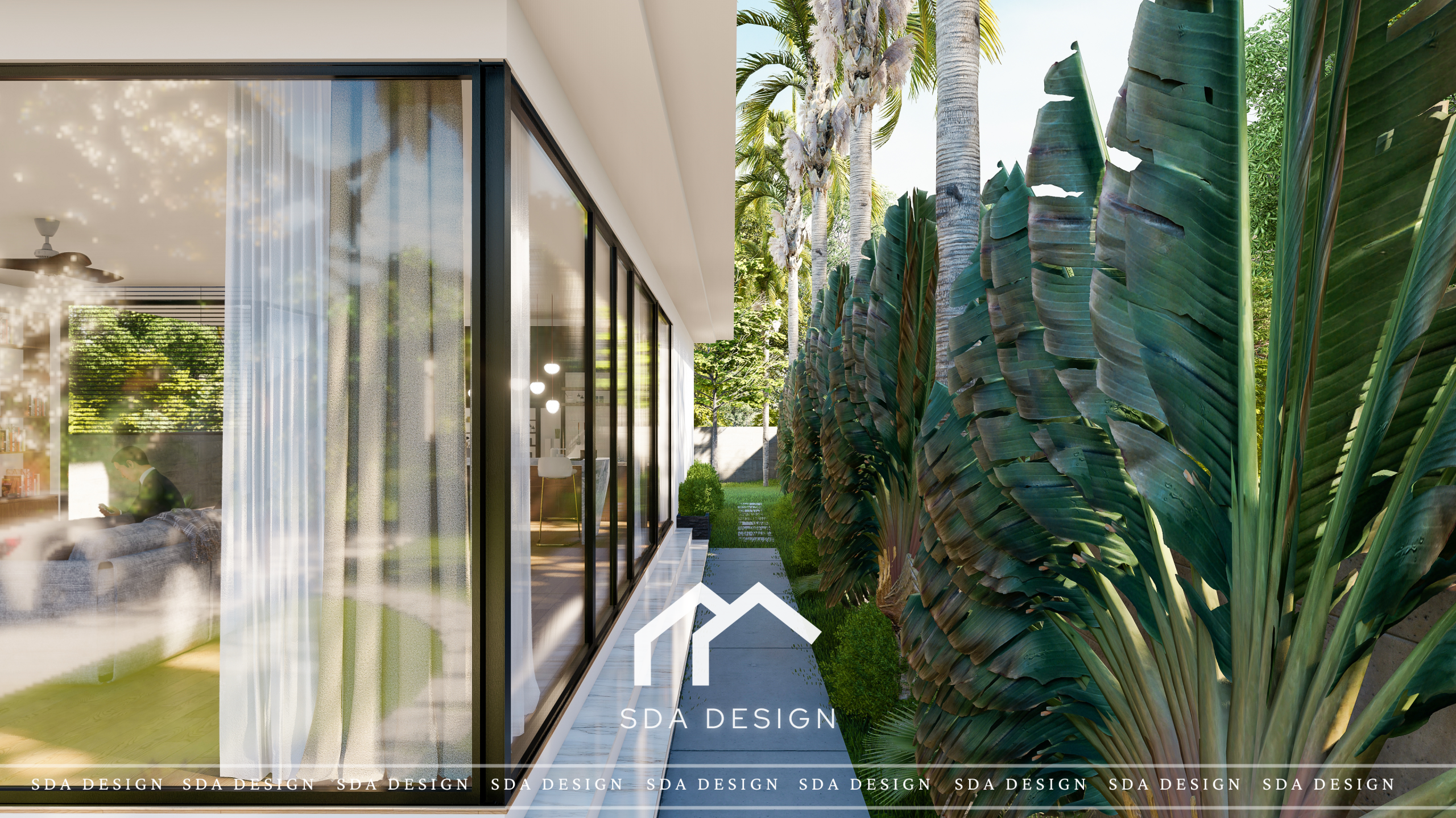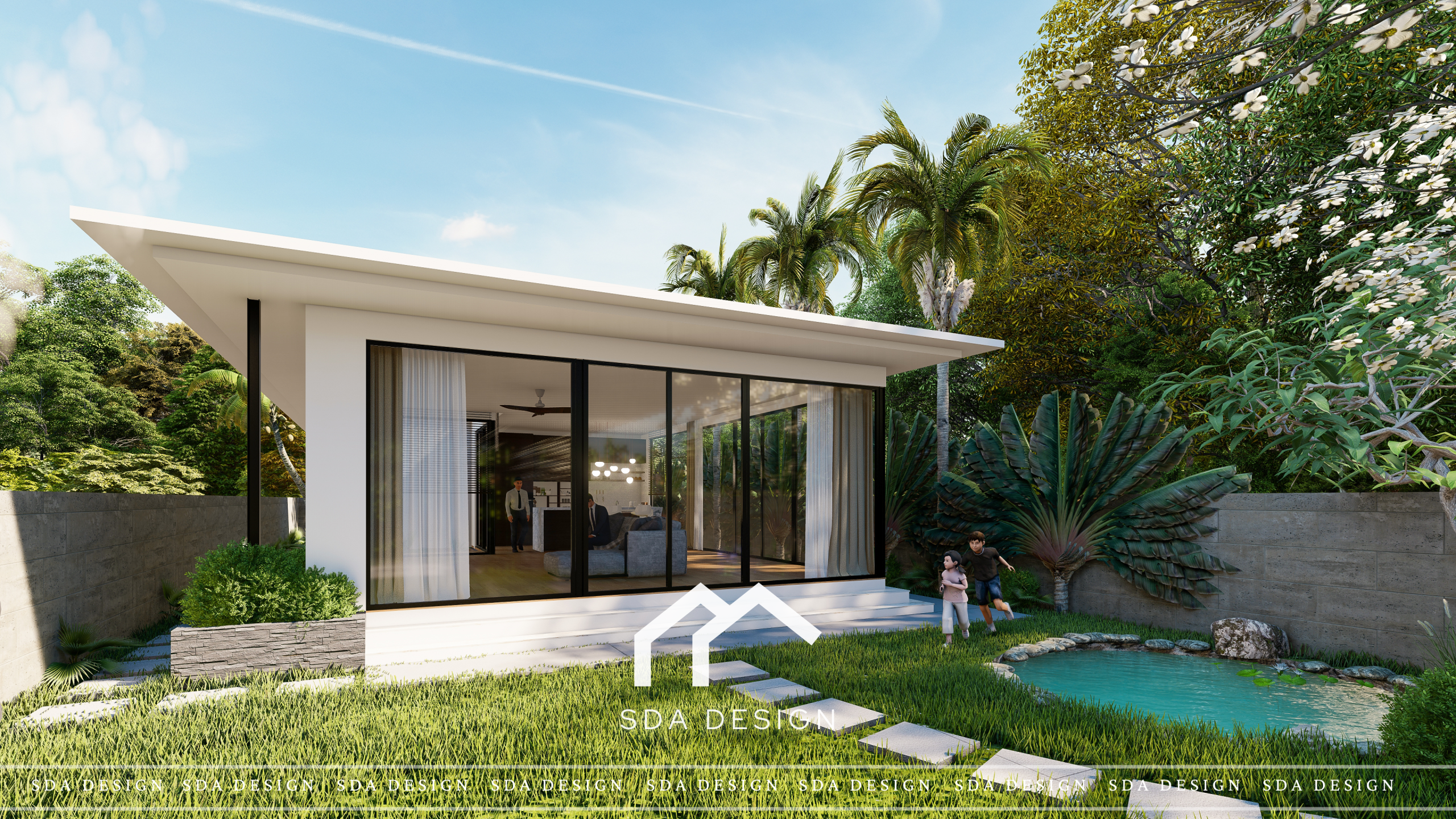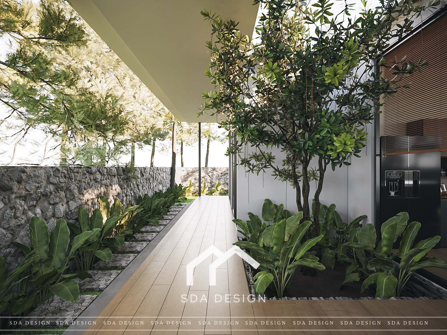 Điểm đặc biệt của Mrs Hạnh House là khu vườn bao quanh với hồ nước nhỏ, lối đi lát đá và cây xanh tươi tốt. Thiết kế 3D thể hiện rõ bức tranh thiên nhiên thu nhỏ, tạo sự cân bằng giữa không gian sống và nghỉ dưỡng.