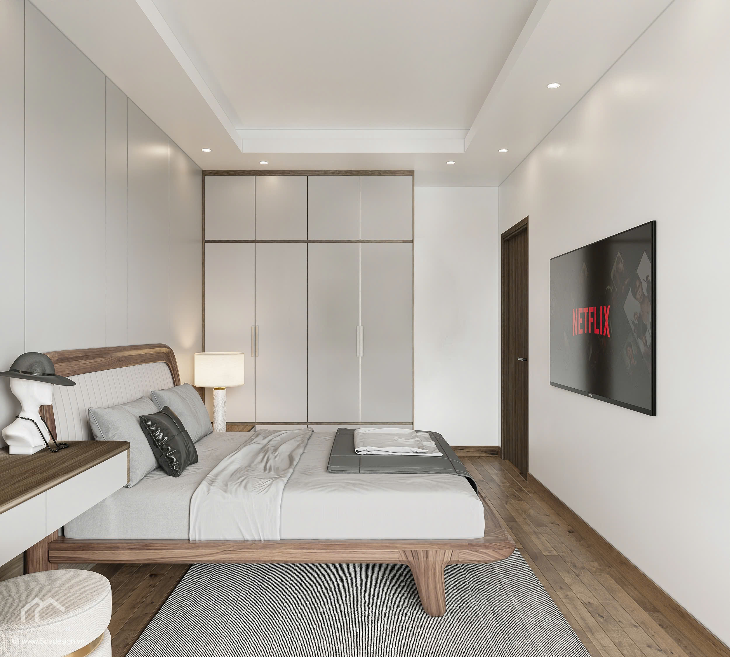 Khám phá mẫu thiết kế nội thất chung cư sử dụng tông màu ghi, trắng và gỗ, mang lại vẻ đẹp hiện đại và ấm cúng.