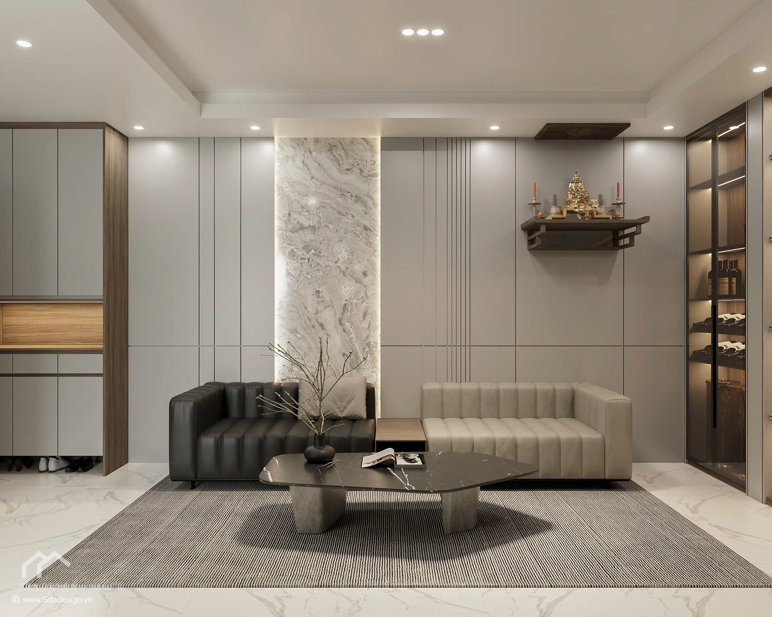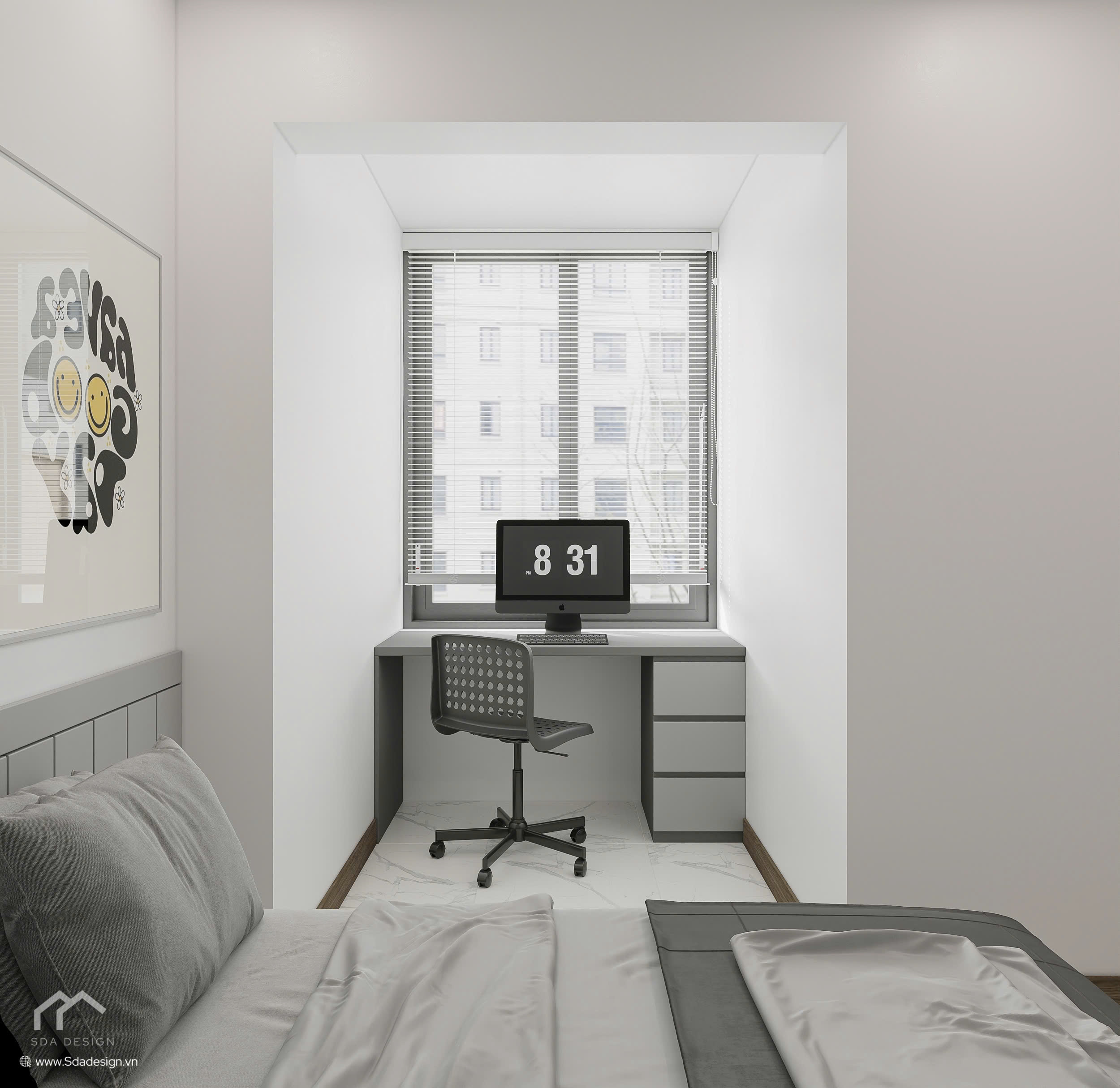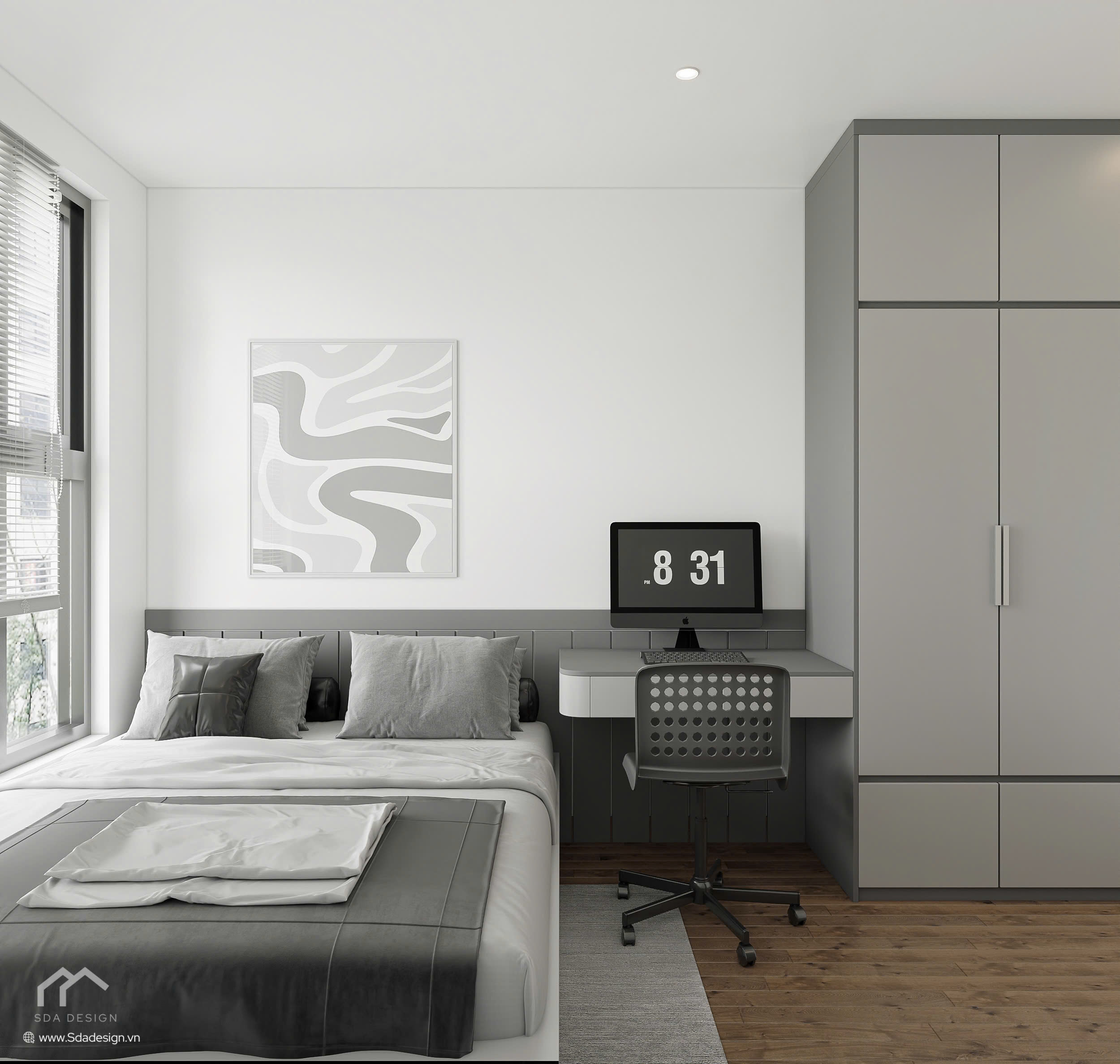 Tông màu thanh lịch: Màu ghi và trắng tạo nền tảng trung tính, giúp không gian trở nên thoáng đãng và dễ dàng kết hợp với nhiều món đồ trang trí.