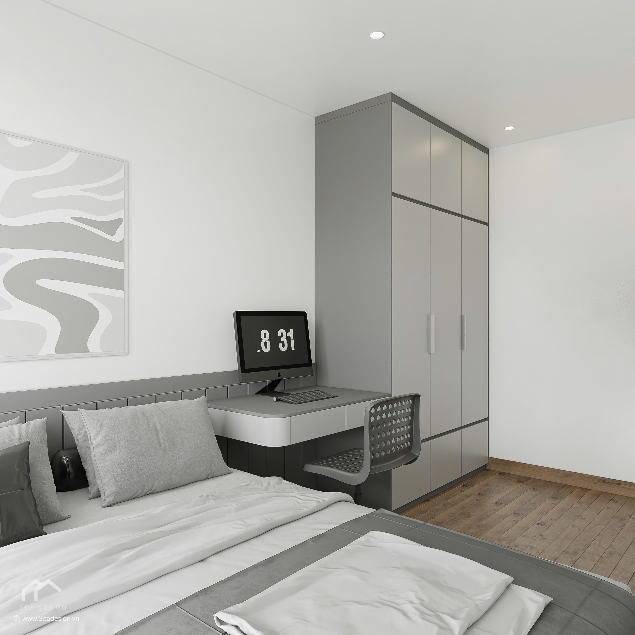 Mẫu thiết kế nội thất chung cư sử dụng gỗ công nghiệp cùng tông màu ghi, trắng mang lại vẻ đẹp hiện đại, sang trọng và ấm áp. Nếu bạn muốn tạo dựng một không gian sống độc đáo và đầy phong cách, hãy liên hệ với chúng tôi để nhận được sự tư vấn chuyên nghiệp!